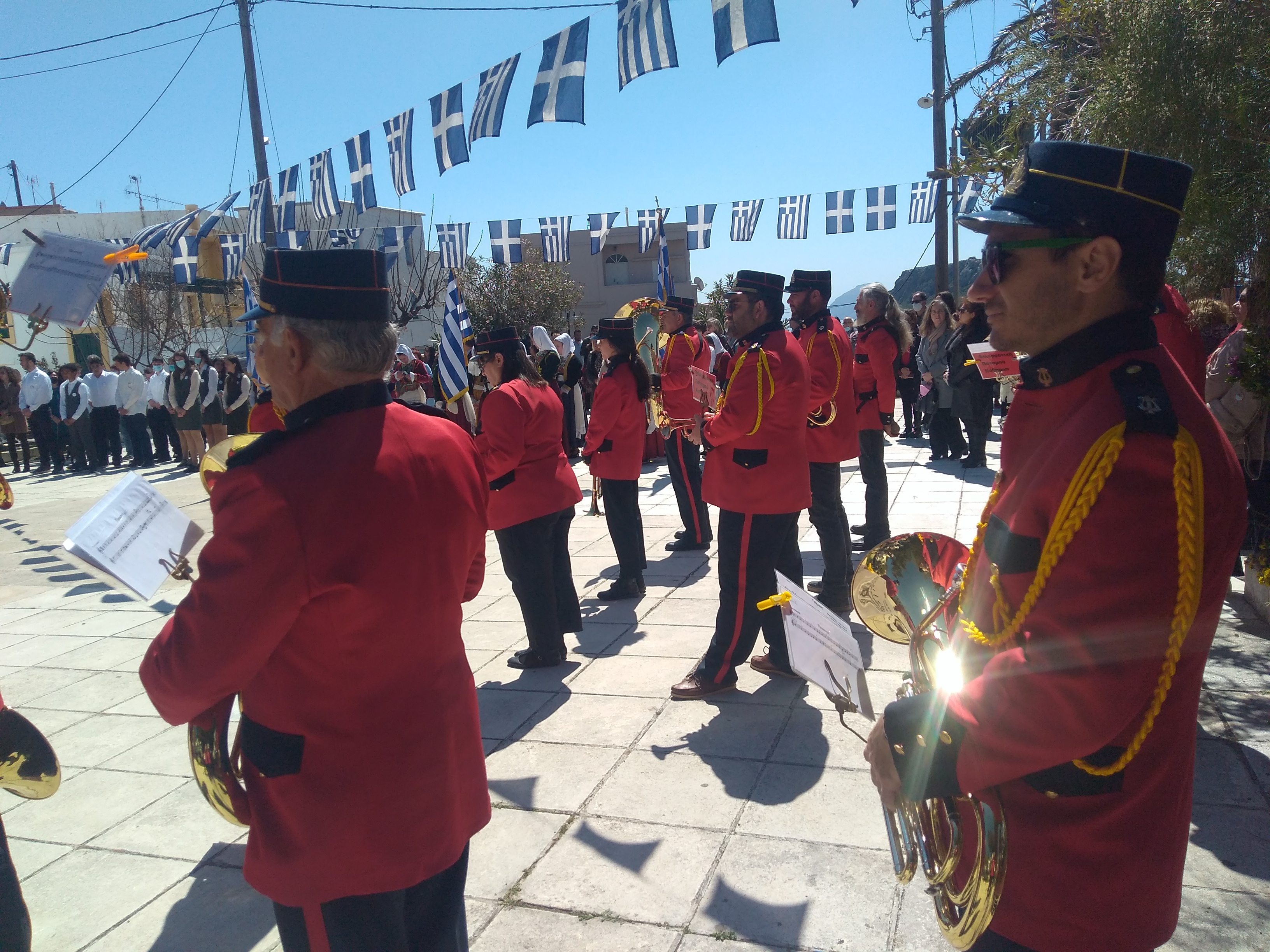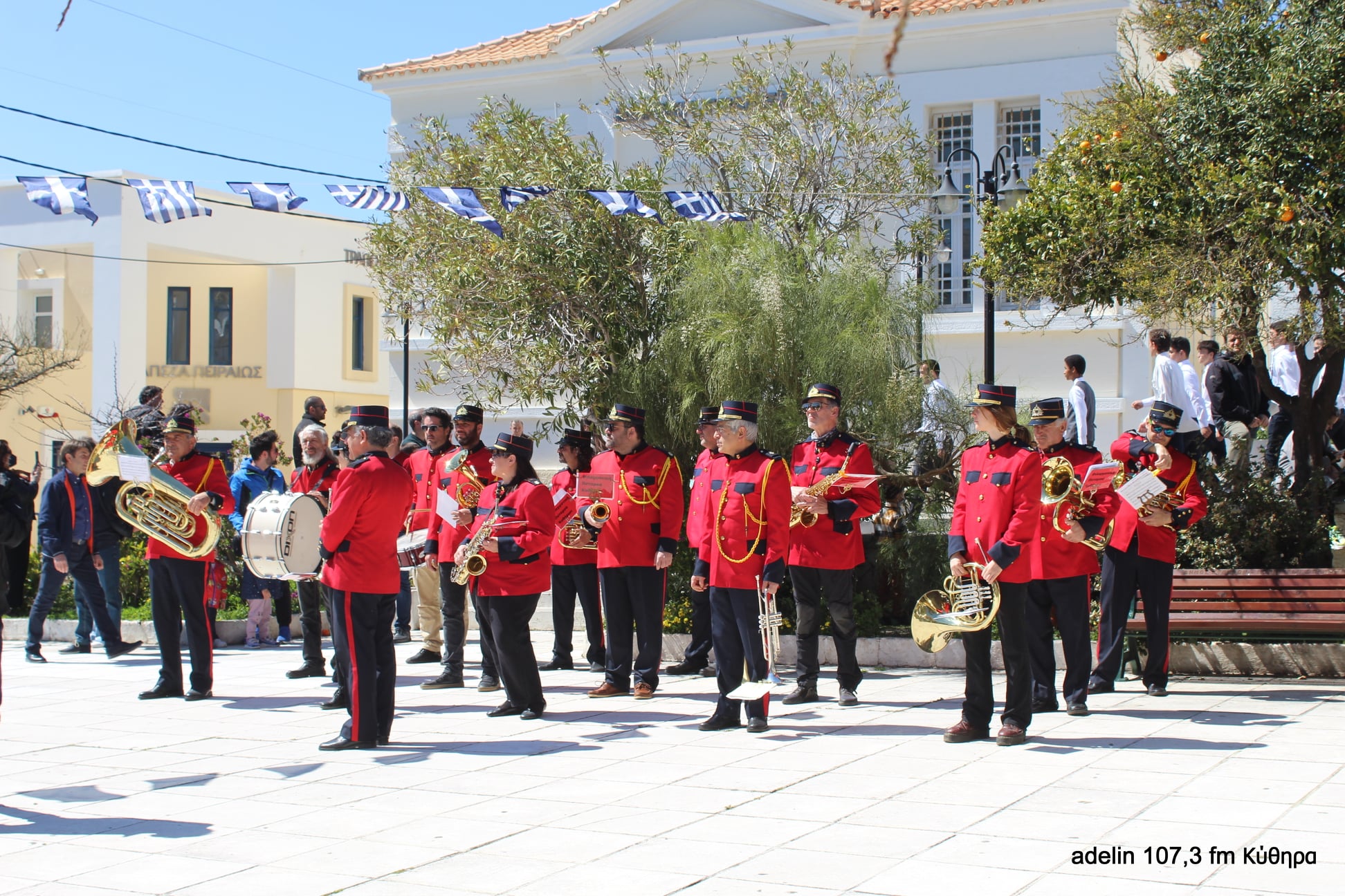 Η Φιλαρμονική , μετά από πρόσκληση του Δήμου μας, συμμετείχε στις επετειακές εκδηλώσεις για την 25η Μαρτίου που πραγματοποιήθηκαν στην Χώρα με την παρουσία των πολιτικών ,θρησκευτικών και στρατιωτικών αρχών του τόπου. Ερμήνευσε τον Εθνικό Ύμνο την Προσευχή και εμβατήρια για την παρέλαση του Λυκείου Κυθήρων. Μετά το τέλος της εκδήλωσης έπαιξε μια διασκευή του “Τσάμικου” των Χατζιδάκι/Γκάτσου. Ο διευθυντής της μπάντας μας Παναγιώτης Λευθέρης ευχαριστεί όλα τα μέλη της. τους μουσικούς που έσπευσαν να συνδράμουν την εκδήλωση:
