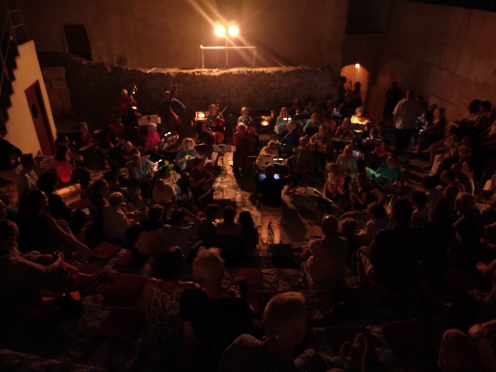 Για πρώτη φορά από την έναρξη της πανδημίας έγινε δυνατή μια ακόμη σύμπραξη της Φιλαρμονικής Ποταμού Κυθήρων με την βρετανική ορχήστρα εγχόρδων Allcomers η οποία πραγματοποιεί κάθε χρόνο το θερινό της εργαστήριο στα Κύθηρα εδώ και 18 χρόνια.