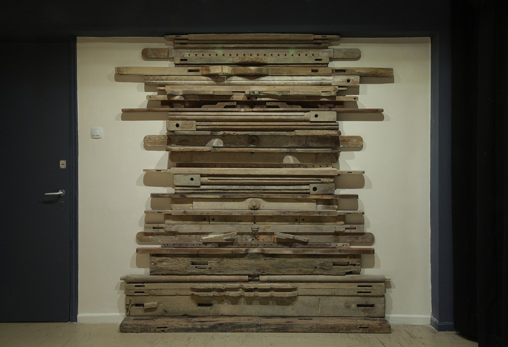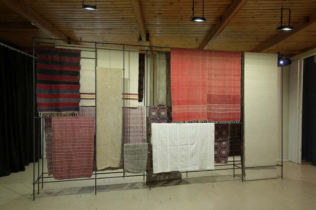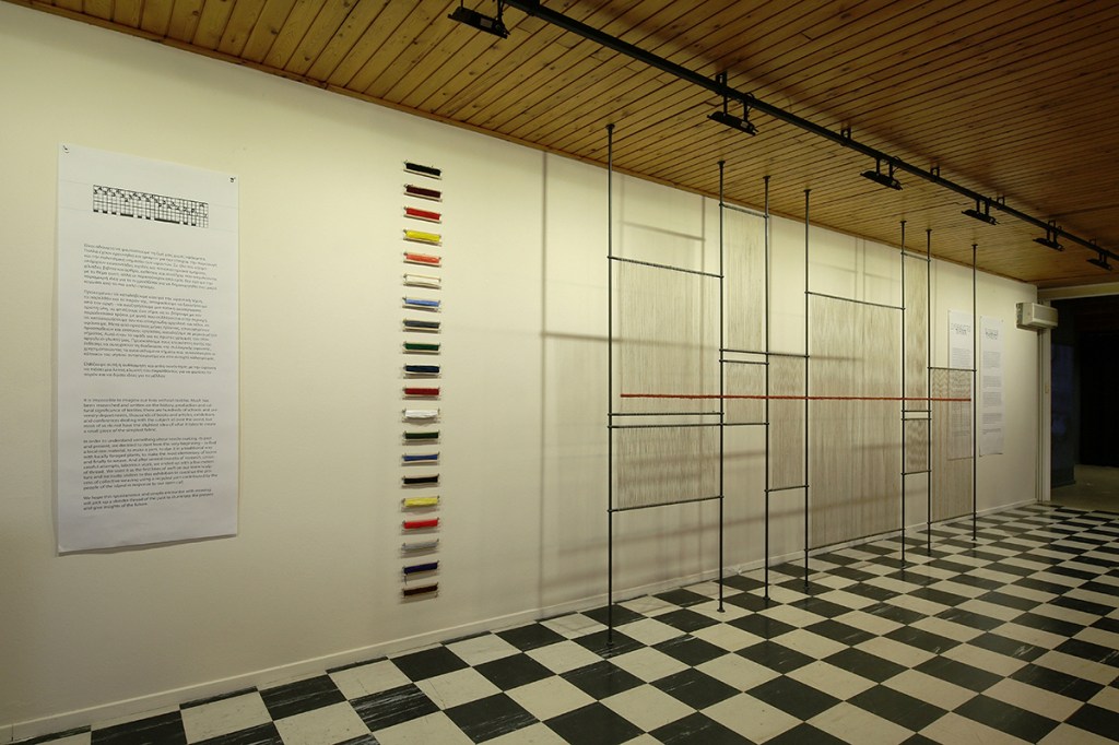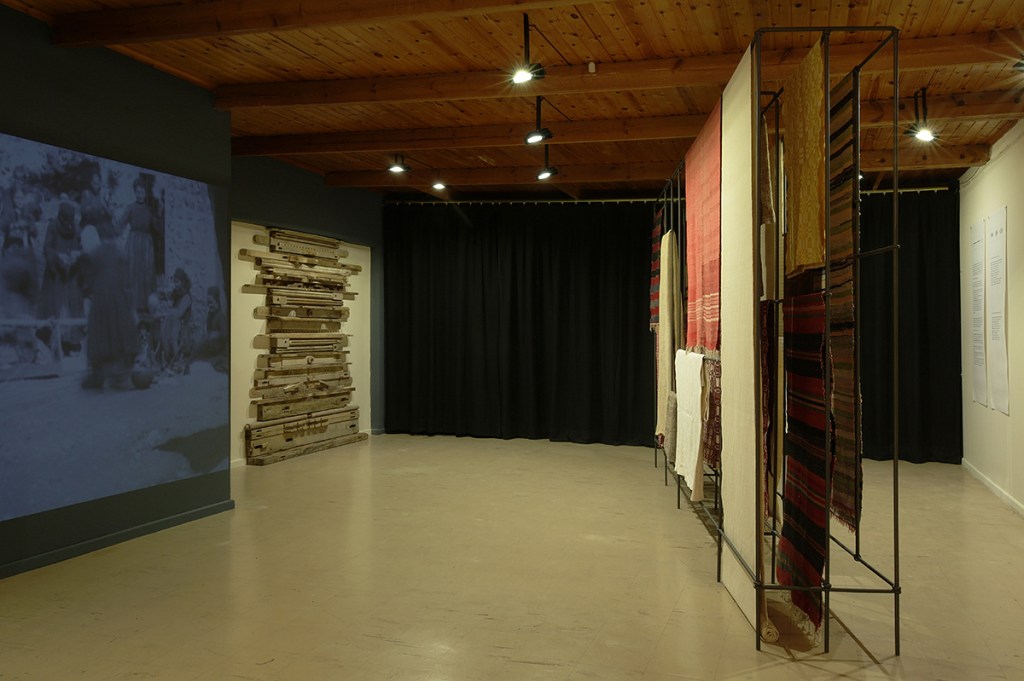 This exhibition emerged from local garbage bins, where we found parts of destroyed looms and old hand-woven fabrics. Following the thread of a forgotten craft, we explored the closed chests and attics of Kythirian houses, some of which still contain treasures –