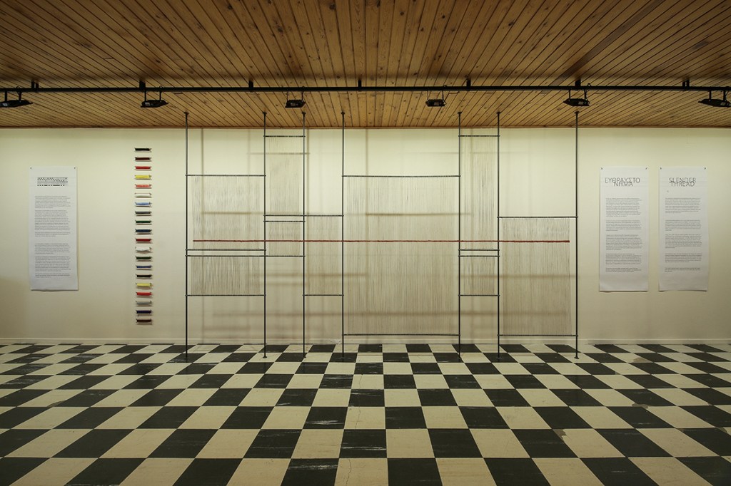 Η έκθεση δεν διεκδικεί να ερευνήσει την ιστορία τωνπαραδοσιακών κυθηραϊκών υφαντών. Αντιθέτως αναδεικνύει την ιστορία της εξαφάνισής τους. Μέσω της άμεσης επαφής με τα τελευταία απομεινάρια των ταπεινών αλλά συγκινητικά όμορφων χειροποίητων υφασμάτων, ελπίζουμε να ευαισθητοποιήσουμε το κοινό σχετικά με τη σταδιακή εξαφάνιση της τοπικής πολιτιστικής κληρονομιάς. Το παρελθόν μας κρέμεται από μια λεπτή κλωστή.