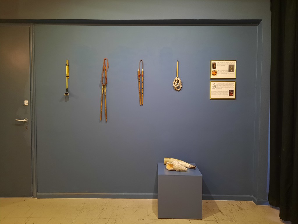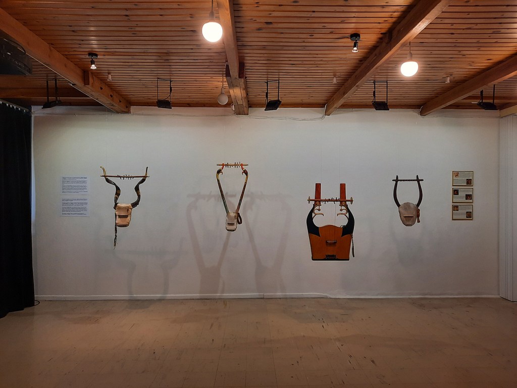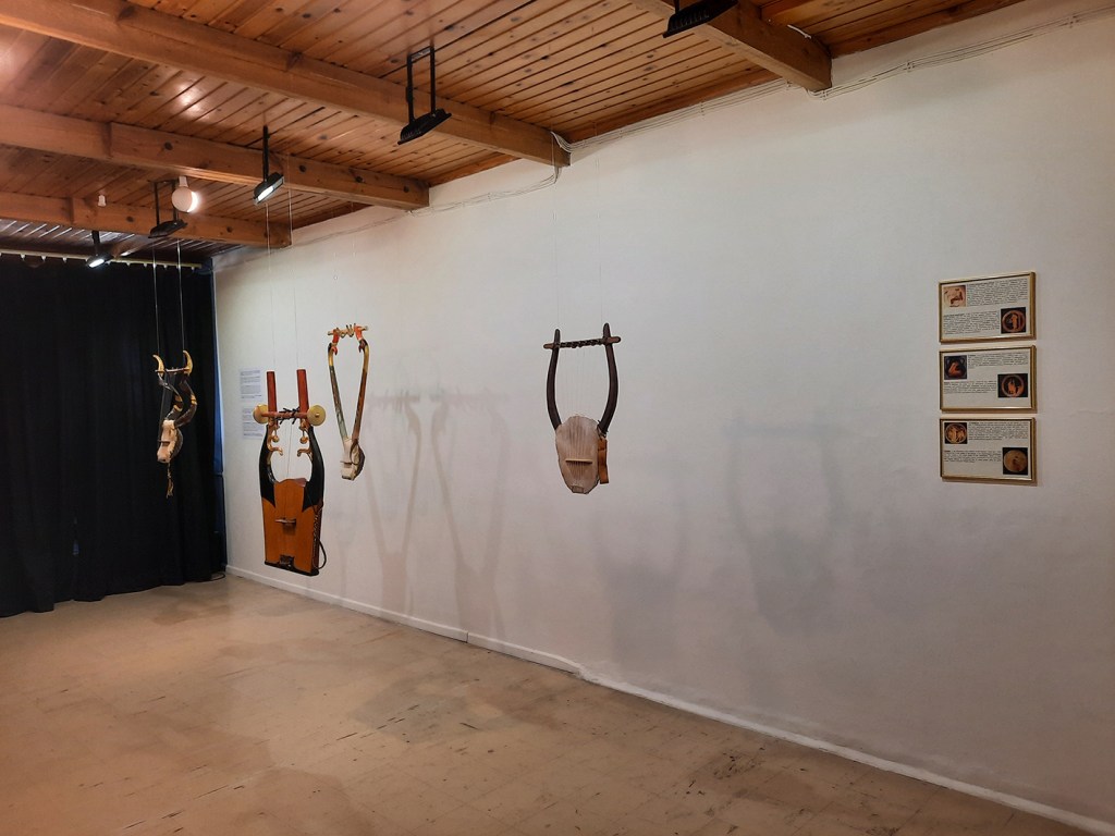 Εικαστική έκθεση με ρέπλικες αρχαίων ελληνικών οργάνων τις οποίες έχει κατασκευάσει ο Γιώργος Νίκας και το εργαστήριό του “Παλμός”. / Art exhibition with replicas of ancient Greek instruments made by George Nikas of the “Palmos” workshop.