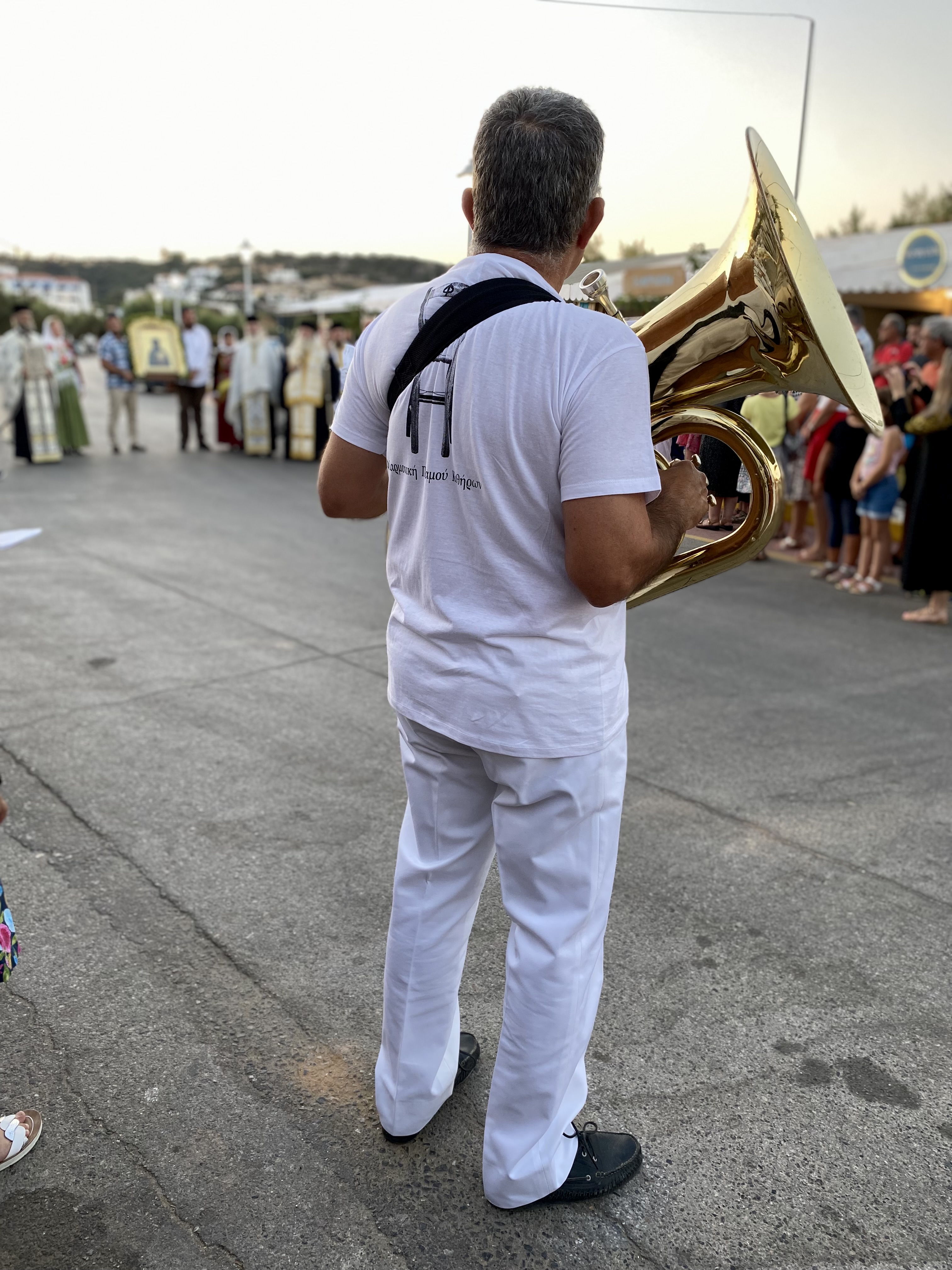 On 22 June in the afternoon our band, after a 3-year hiatus, accompanied the procession of the Icon of Agia Pelagia and later, as part of the celebration of the day, gave a small concert in the newly built stands under the old customs house. The conductor of the band Panayotis Leftheris thanks all the members of the band, the above musicians who assisted the event.