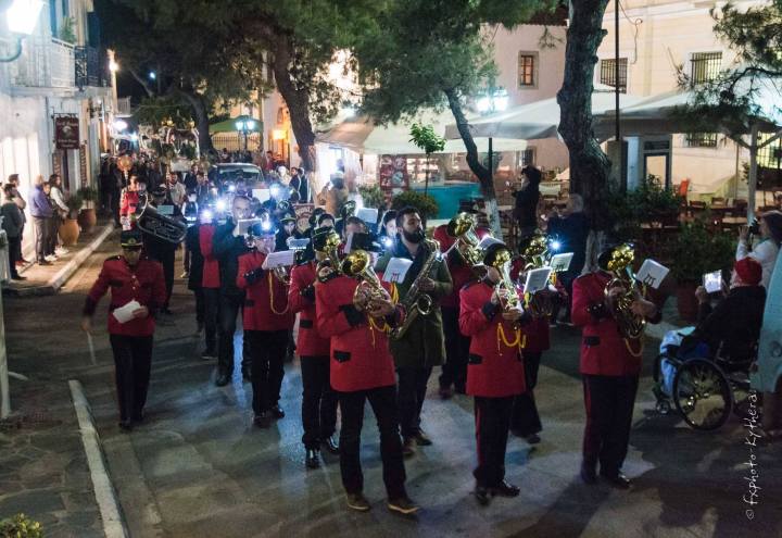 Kythera Philharmonic (“Philharmoniki Potamou Kythiron”) is the only marching band of the island of Kythera. It was founded by the maestro Strati Theodorakaki and other music lovers of the village of Potamos in 1964. Today, there are around 30 non-professional musicians who work on a voluntary basis and cover the national and religious celebrations of the island while giving many successful concerts. Philharmoniki is also an independent artistic non-profit association founded in 1966 to support the activities of the marching band and to organize cultural events. It currently has about 60 members, permanent residents of the island and a Board of Directors elected every three years. It has a privately-owned, well-equipped hall for rehearsals, concerts, screenings, exhibitions, presentations, lessons, etc. as well as a library. It is one of the few artistic associations of Kythira and gathers around it many musicians and people interested in the arts. In addition to the marching band, there is a choral ensemble, as well as art, puppet and cinema workshops.