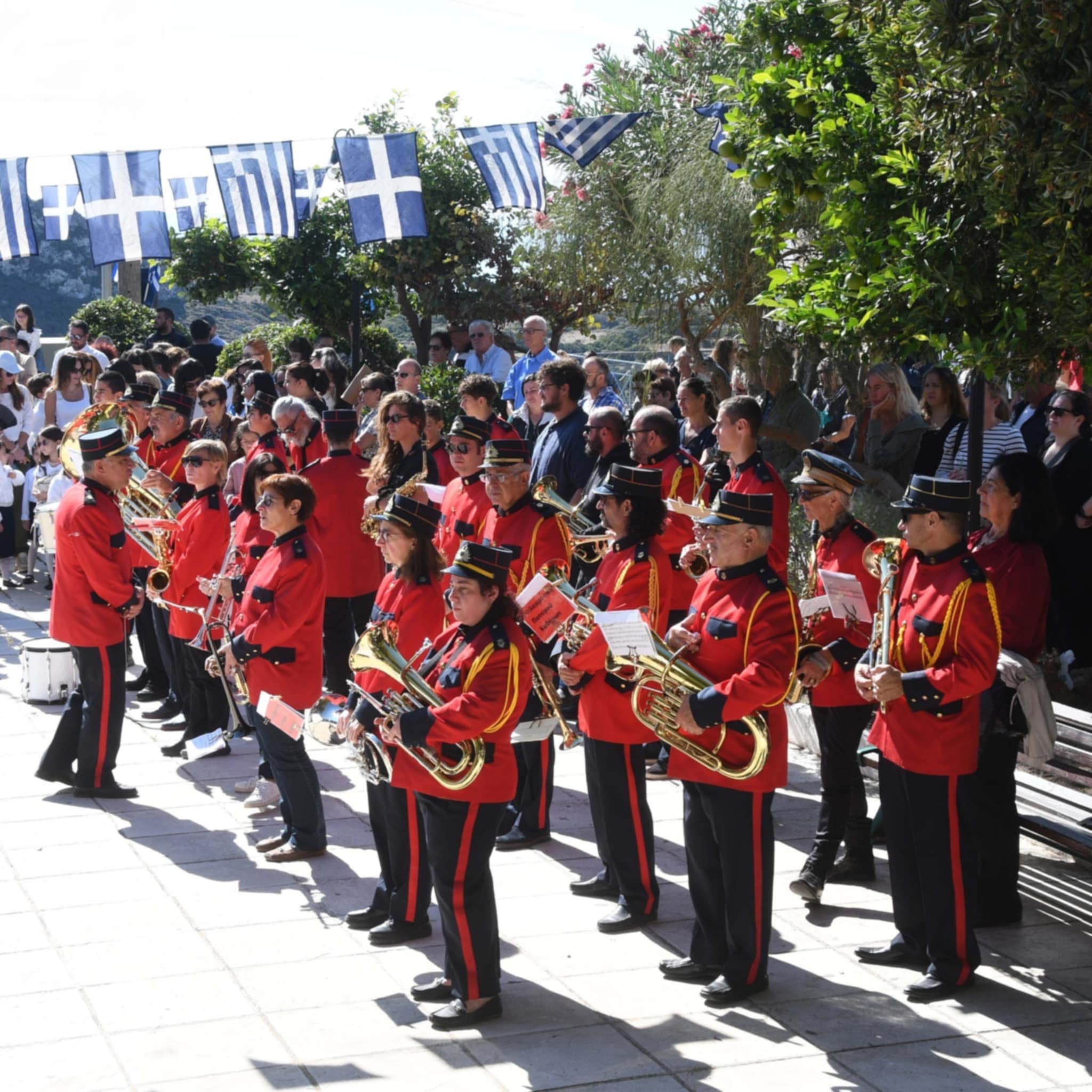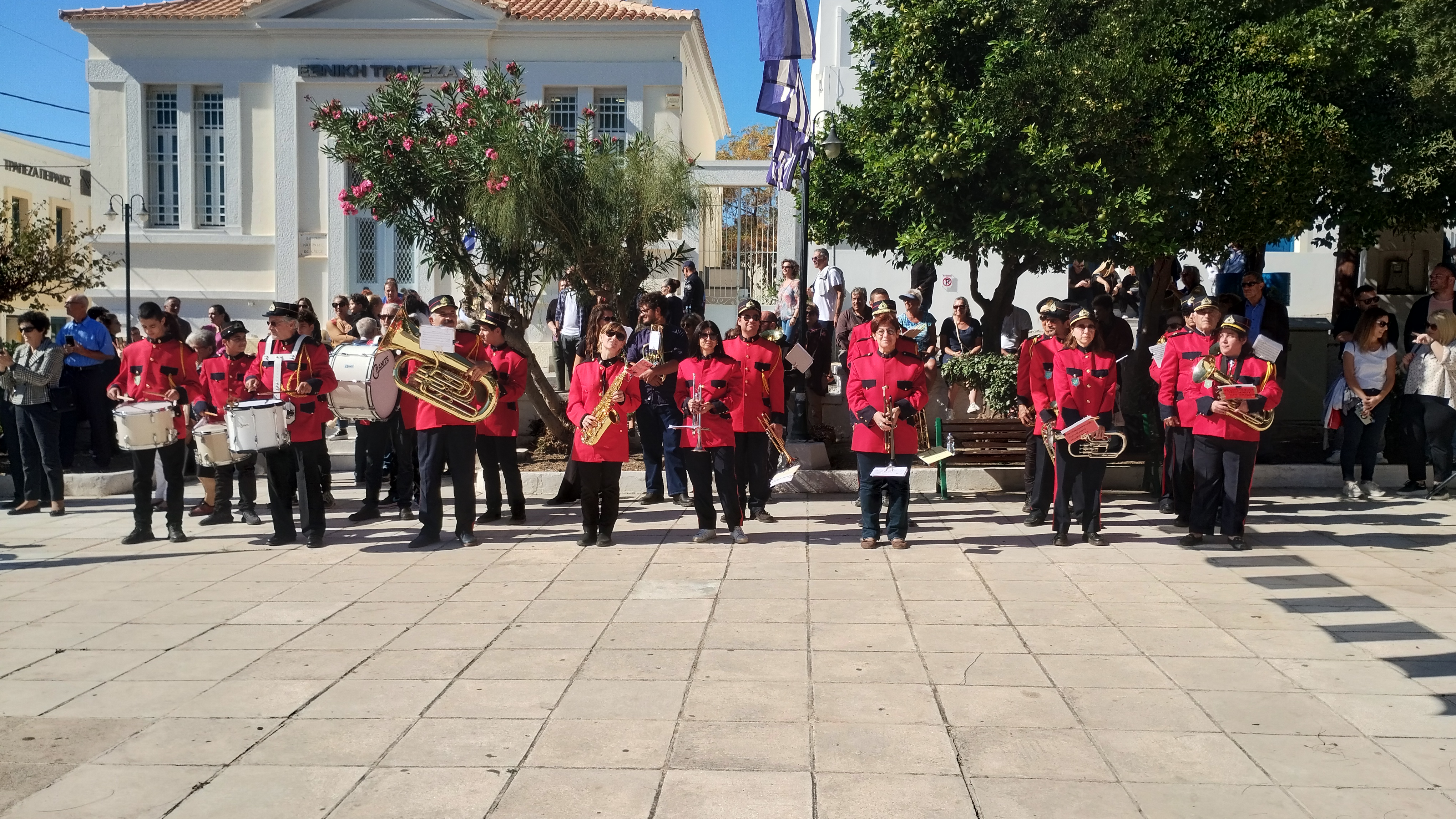 Η μπάντα της Φιλαρμονικής, όπως κάθε χρόνο, έλαβε μέρος στον εορτασμό της εθνικής επετείου της 28ης Οκτωβρίου, στον Ποταμό και την Χώρα, αναλαμβάνοντας το μουσικό κομμάτι του τελετουργικού, την εκτέλεση του Εθνικού Ύμνου και του εμβατηρίου “Η Πίνδος” κατά την διάρκεια της παρέλασης των μαθητών των σχολείων του νησιού. Ο διευθυντής της μπάντας Παναγιώτης Λευθέρης ευχαριστεί θερμά τους εθελοντές μουσικούς που συμμετείχαν: