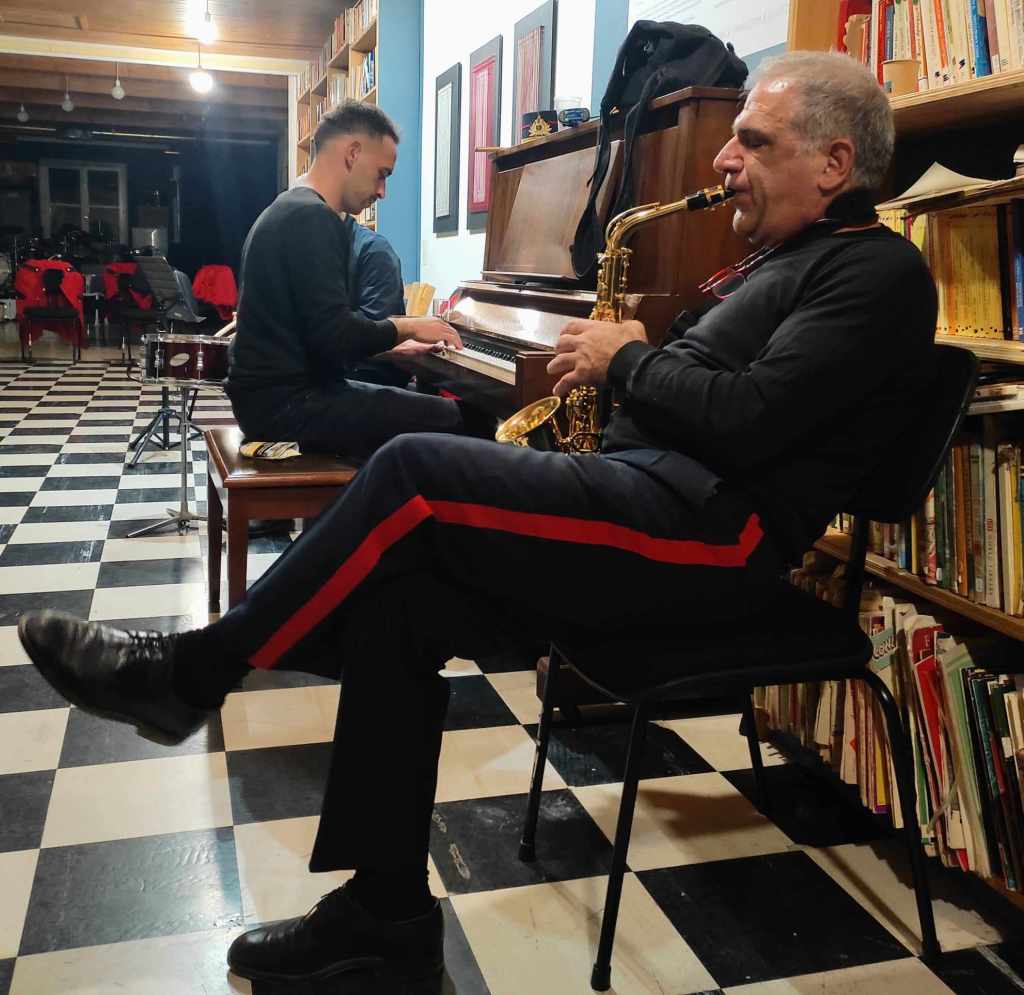 Ο διευθυντής της μπάντας Παναγιώτης Λευθέρης ευχαριστεί του εθελοντές μουσικούς που συμμετείχαν στην εκδήλωση: