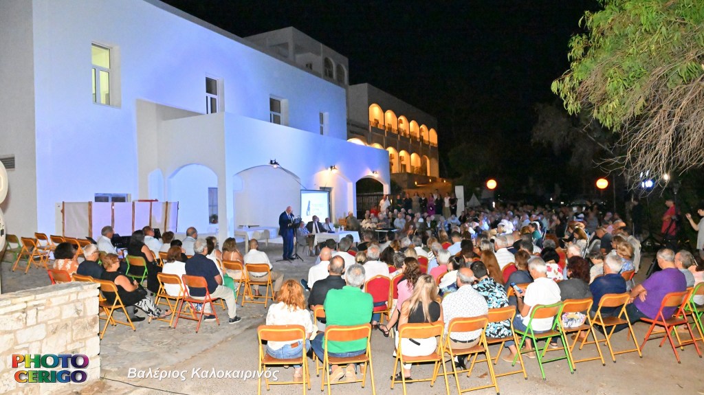Β. Concert with the new work of the Kytherian composer Panayotis Leftheris entitled “Musai paedevsan te Philoxenon” (“The muses trained Philoxenos”) in first performance. It is a composition based on the poetry of the ancient lyric poet Pindar, for narrator, lyric singer and instrumental ensemble, pre-recorded sounds and live sound processing with modular samplers.