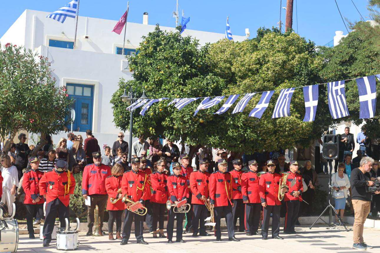 Η μπάντα της Φιλαρμονικής, όπως κάθε χρόνο, έλαβε μέρος στον εορτασμό της εθνικής επετείου της 28ης Οκτωβρίου, στον Ποταμό και την Χώρα, αναλαμβάνοντας το μουσικό κομμάτι του τελετουργικού, την εκτέλεση του Εθνικού Ύμνου και του εμβατηρίου “Η Πίνδος” κατά την διάρκεια της παρέλασης των μαθητών των σχολείων του νησιού. Ο διευθυντής της μπάντας Παναγιώτης Λευθέρης ευχαριστεί θερμά τους εθελοντές μουσικούς που συμμετείχαν: