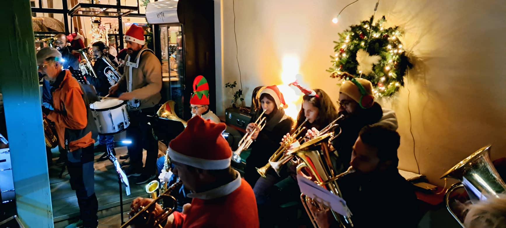 Όπως κάθε χρόνο, έτσι και φέτος η Φιλαρμονική μας θα δώσει εορταστικό τόνο στις ημέρες των Χριστουγέννων. Την Κυριακή 18 Δεκεμβρίου από τις 12:00 το μεσημέρι στην πλατεία του Ποταμού θα παίζει κάλαντα και χριστουγεννιάτικα τραγούδια. Την Δευτέρα 19 Δεκεμβρίου το βραδάκι θα πραγματοποιήσει την καθιερωμένη χριστουγεννιάτικη “γύρα” στα χωριά. Φέτος θα βρίσκεται στις 6:30 στην Αγία Πελαγία και στις 7:30 στον Καραβά. Σας περιμένουμε να τραγουδήσουμε μαζί!